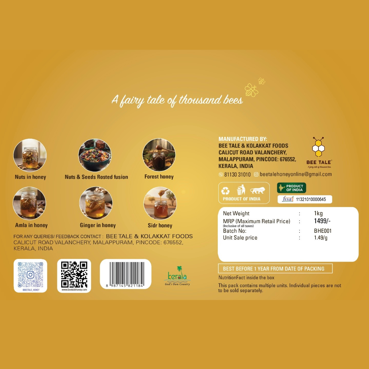 Introducing the Beetale Hexa Edition Premium Gift Box, a beautifully crafted gift set filled with nature’s purest treasures. Each item inside is made with high-quality ingredients, slow-crafted to deliver taste, health, and unmatched freshness. Whether it’s for festive gifting, corporate gifting, or treating your loved ones, this box brings wellness and premium flavour together.
