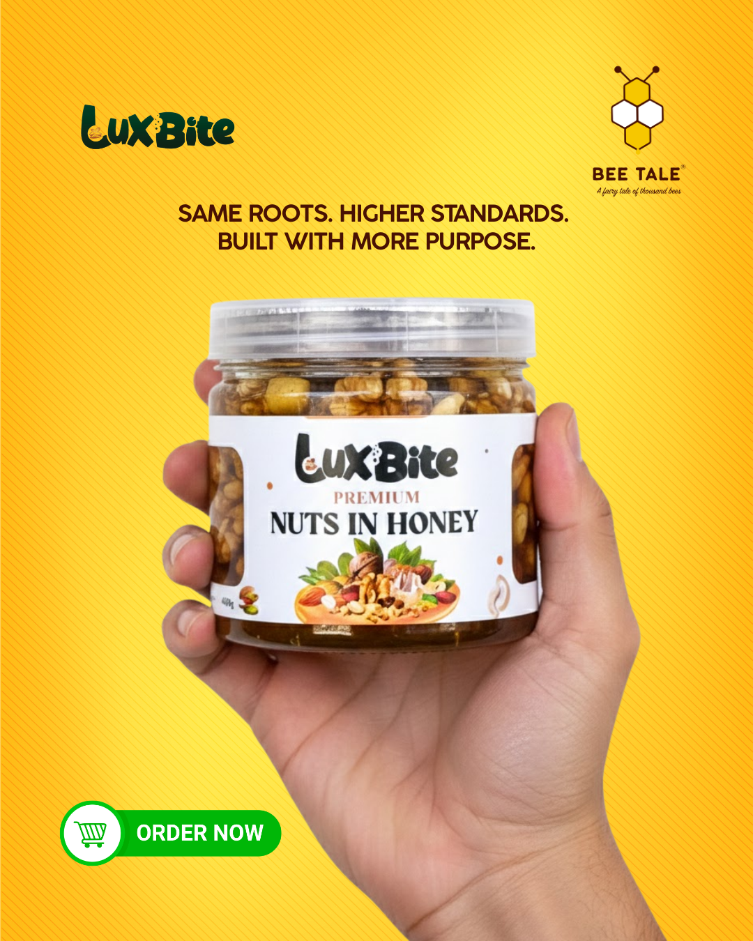 Our product is a healthy blend of pure honey mixed with premium cashew, almond, walnut, pistachio, fig, raisin, dates, and other natural dry fruits.